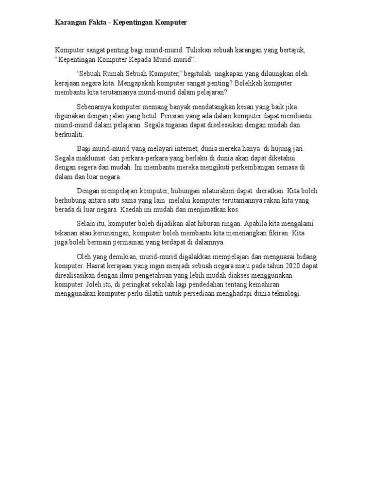 Karangan Fakta Kepentingan Komputer Pdf